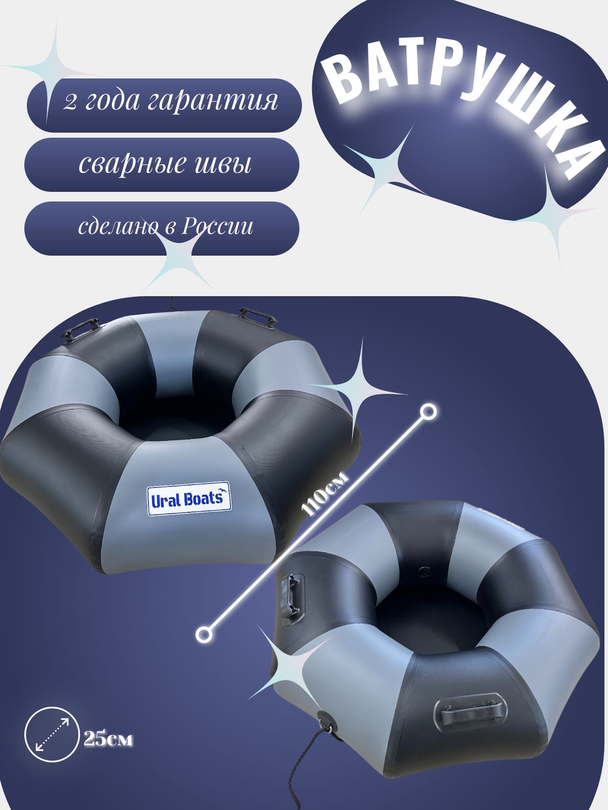 Уральская надувная лодка ПВХ Т220 750гр. плотность