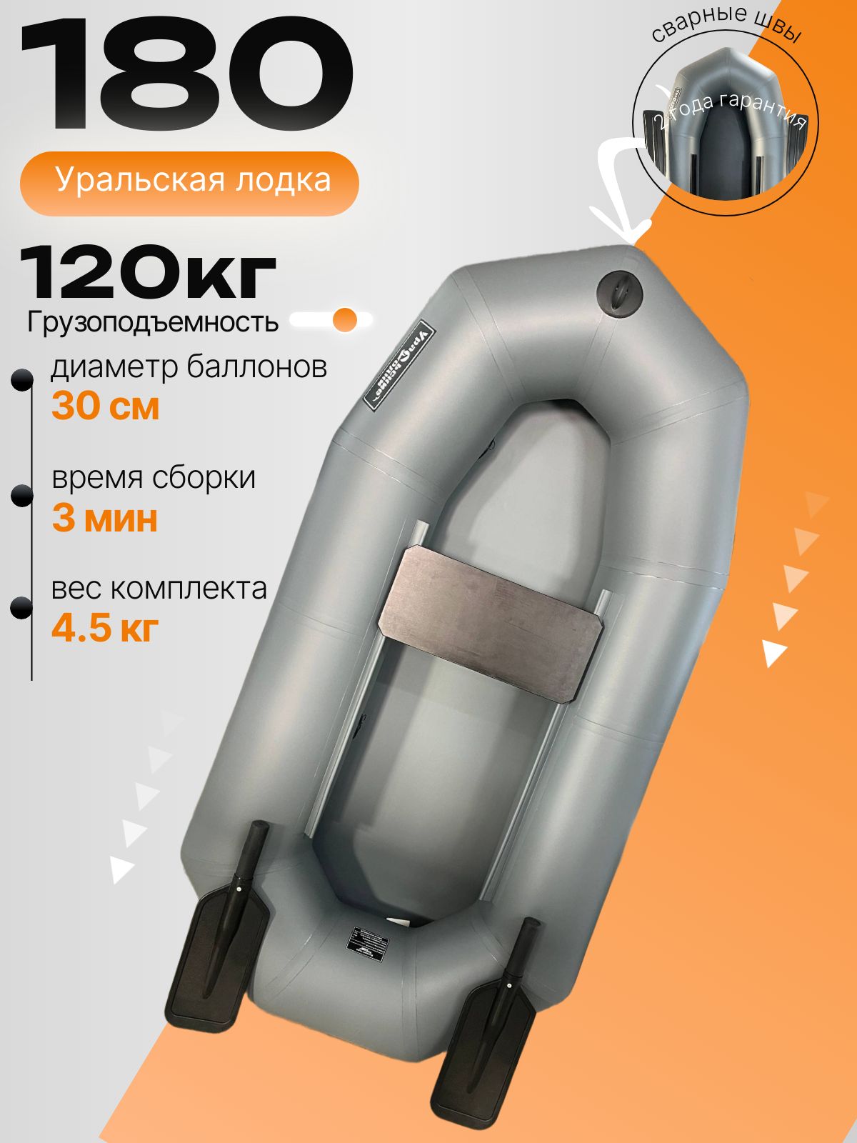 Лодка ПВХ для рыбалки 180 с гребками